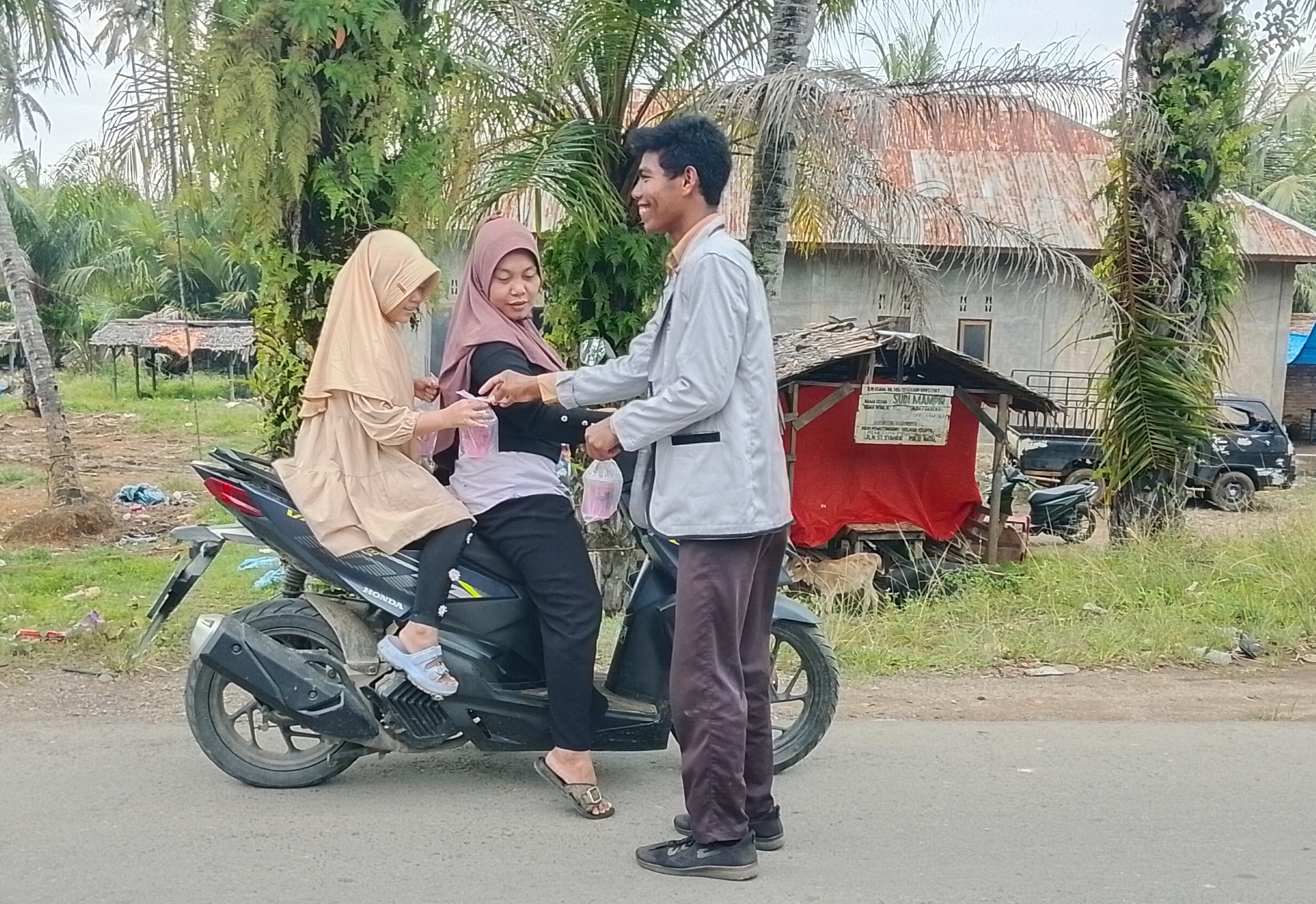 Mandailing Natal | Sketsa Online – Organisasi Siswa Intra Sekolah (OSIS) SMK Negeri 1 Natal melaksanakan aksi kepedulian sosial dengan melaksanakan giat bagi-bagi Takjil gratis kepada pengguna jalan yang melintas di Jalan Sutan Syahrir, Kecamatan Natal, Kabupaten Mandailing Natal pada Jumat (6/3/2026).