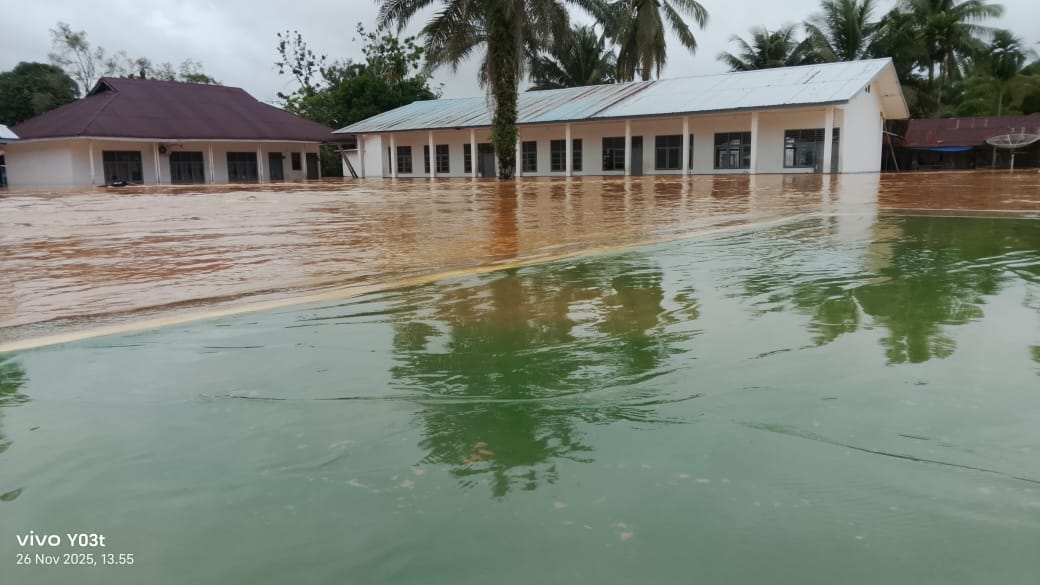 Mandailing Natal | Sketsa Online – Gedung sekolah SMA Negeri 1 Natal yang terletak di Jl. Pendidikan Sasaran, Kecamatan Natal, Kabupaten Mandailing Natal (Madina) pada Rabu (26/11/2025), tak luput dari genangan banjir.